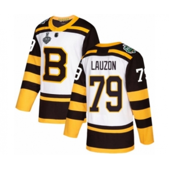 Men's Boston Bruins #79 Jeremy Lauzon Authentic White Winter Classic 2019 Stanley Cup Final Bound Hockey Jersey
