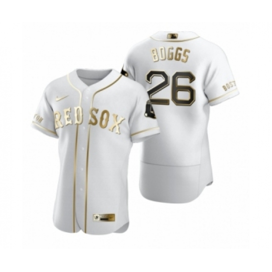 Men's Boston Red Sox #26 Wade Boggs Nike White Authentic Golden Edition Jersey