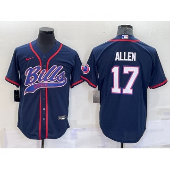 >Men's Buffalo Bills #17 Josh Allen Navy With Patch Cool Base Stitched Baseball Jersey