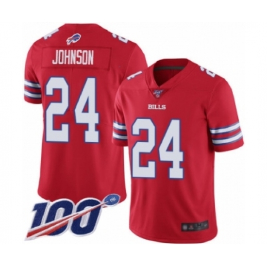 >Men's Buffalo Bills #24 Taron Johnson Limited Red Rush Vapor Untouchable 100th Season Football Jersey