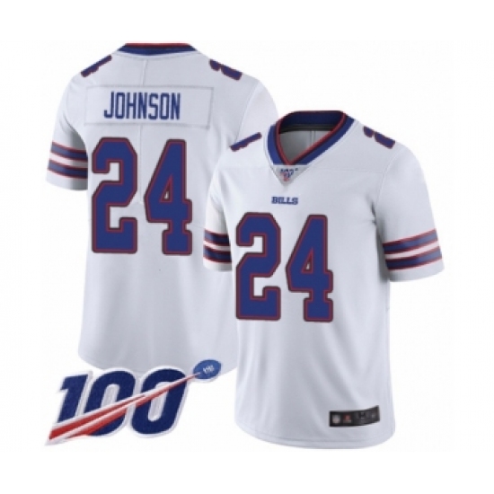 Men's Buffalo Bills #24 Taron Johnson White Vapor Untouchable Limited Player 100th Season Football Jersey