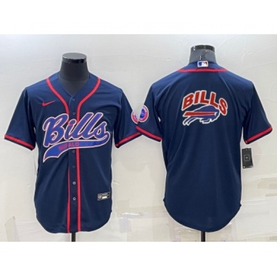 Men's Buffalo Bills Navy Team Blue Big Logo With Patch Cool Base Stitched Baseball Jersey