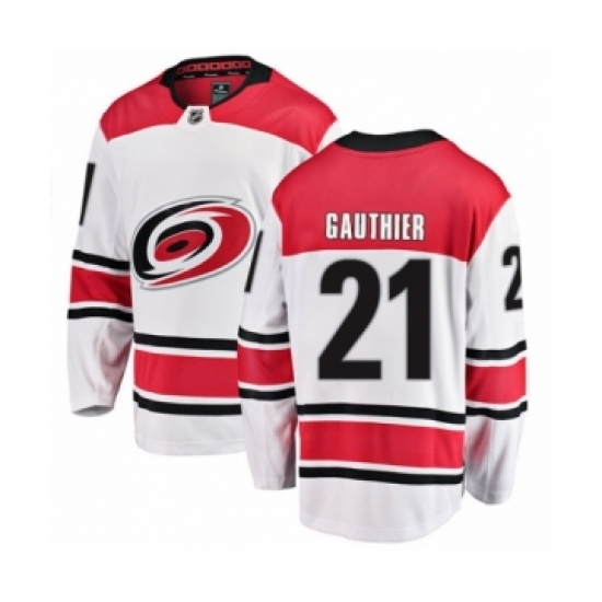 >Men's Carolina Hurricanes #21 Julien Gauthier Authentic White Away Fanatics Branded Breakaway NHL Jersey