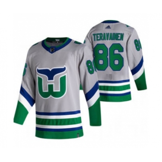 Men's Carolina Hurricanes #86 Teuvo Teravainen Grey 2020-21 Reverse Retro Alternate Hockey Jersey