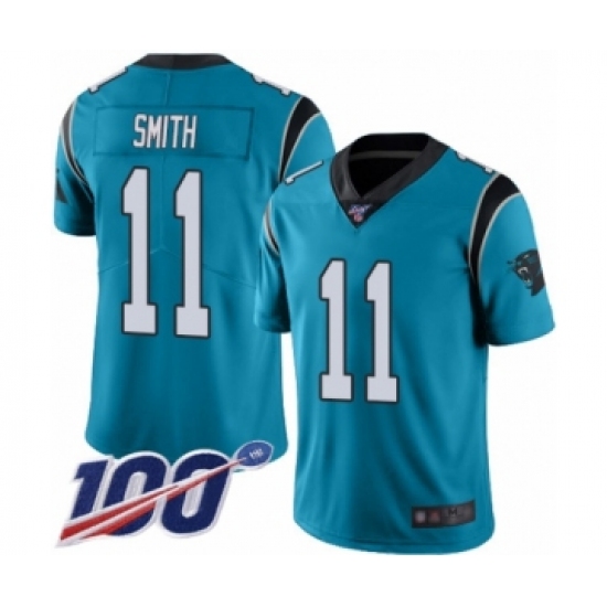 >Men's Carolina Panthers #11 Torrey Smith Blue Alternate Vapor Untouchable Limited Player 100th Season Football Jersey