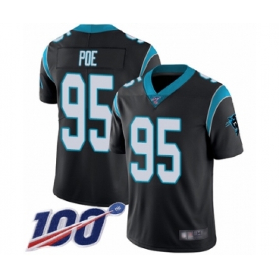 >Men's Carolina Panthers #95 Dontari Poe Black Team Color Vapor Untouchable Limited Player 100th Season Football Jersey