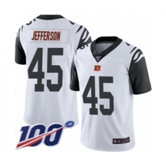 >Men's Cincinnati Bengals #45 Malik Jefferson Limited White Rush Vapor Untouchable 100th Season Football Jersey