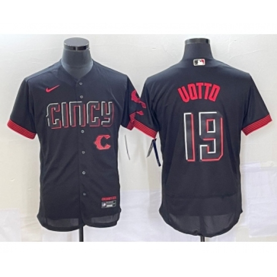 Men's Cincinnati Reds #19 Joey Votto Black 2023 City Connect Flex Base Stitched Jersey 1