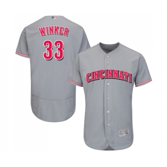 Men's Cincinnati Reds #33 Jesse Winker Grey Road Flex Base Authentic Collection Baseball Jersey