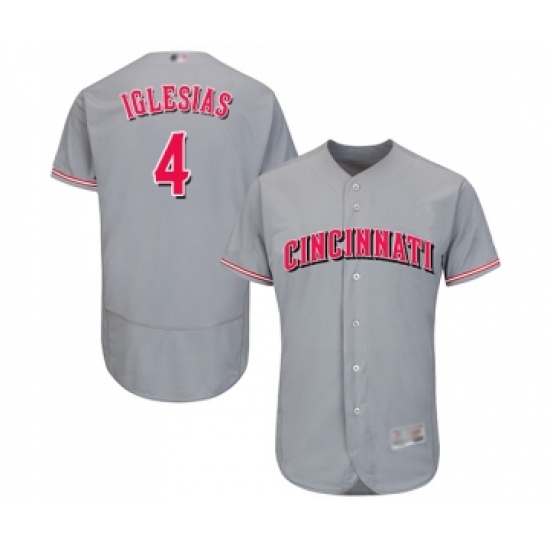 Men's Cincinnati Reds #4 Jose Iglesias Grey Road Flex Base Authentic Collection Baseball Jersey