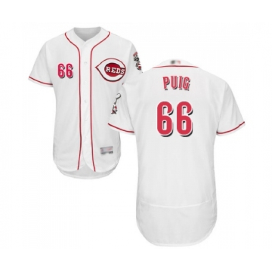 Men's Cincinnati Reds #66 Yasiel Puig White Home Flex Base Authentic Collection Baseball Jersey