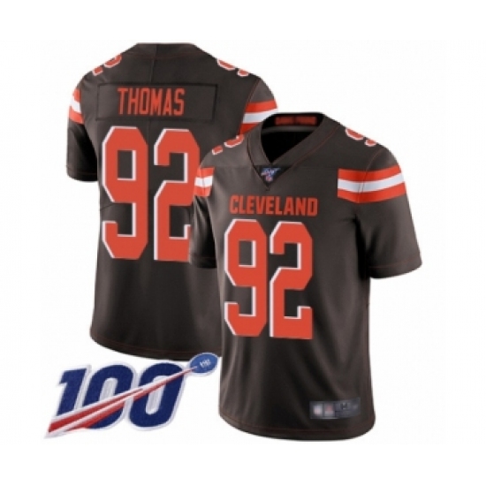 >Men's Cleveland Browns #92 Chad Thomas Brown Team Color Vapor Untouchable Limited Player 100th Season Football Jersey