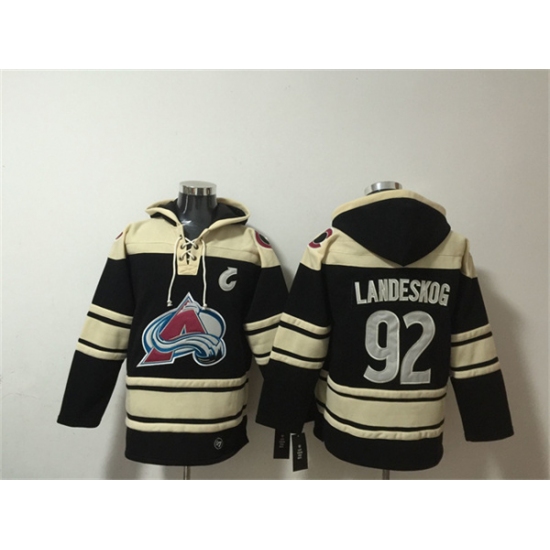 >Men's Colorado Avalanche #92 Gabriel Landeskog Black All Stitched Sweatshirt Hoodie