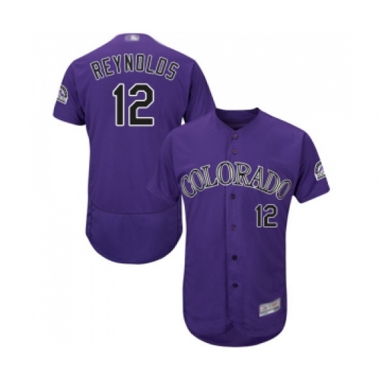 >Men's Colorado Rockies #12 Mark Reynolds Purple Alternate Flex Base Authentic Collection Baseball Jersey