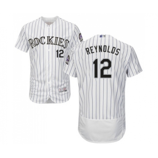 Men's Colorado Rockies #12 Mark Reynolds White Home Flex Base Authentic Collection Baseball Jersey