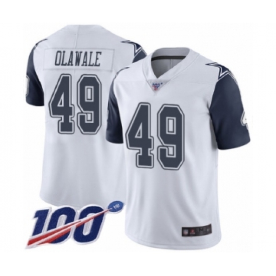 >Men's Dallas Cowboys #49 Jamize Olawale Limited White Rush Vapor Untouchable 100th Season Football Jersey