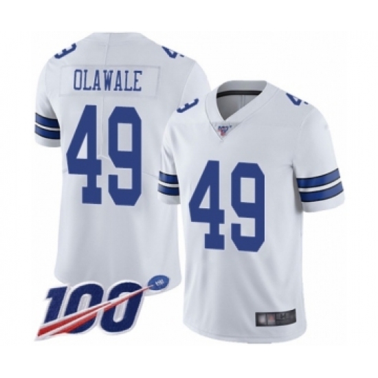 >Men's Dallas Cowboys #49 Jamize Olawale White Vapor Untouchable Limited Player 100th Season Football Jersey