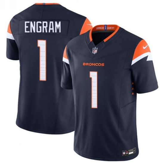 >Men's Denver Broncos #1 Evan Engram Navy F.U.S.E. Vapor Limited Football Stitched Jersey