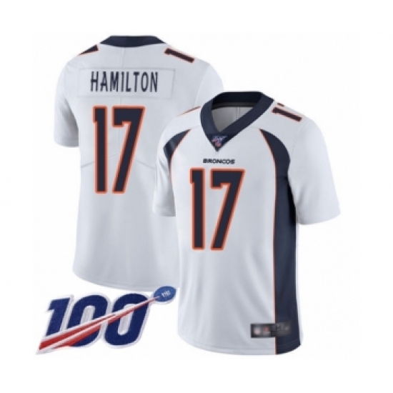 >Men's Denver Broncos #17 DaeSean Hamilton White Vapor Untouchable Limited Player 100th Season Football Jersey
