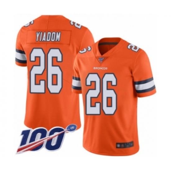 >Men's Denver Broncos #26 Isaac Yiadom Limited Orange Rush Vapor Untouchable 100th Season Football Jersey
