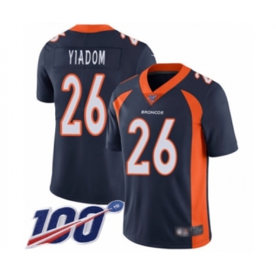 Men's Denver Broncos #26 Isaac Yiadom Navy Blue Alternate Vapor Untouchable Limited Player 100th Season Football Jersey