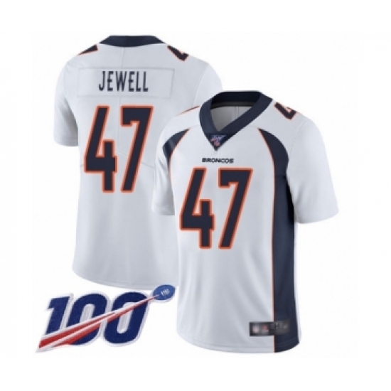 Men's Denver Broncos #47 Josey Jewell White Vapor Untouchable Limited Player 100th Season Football Jersey