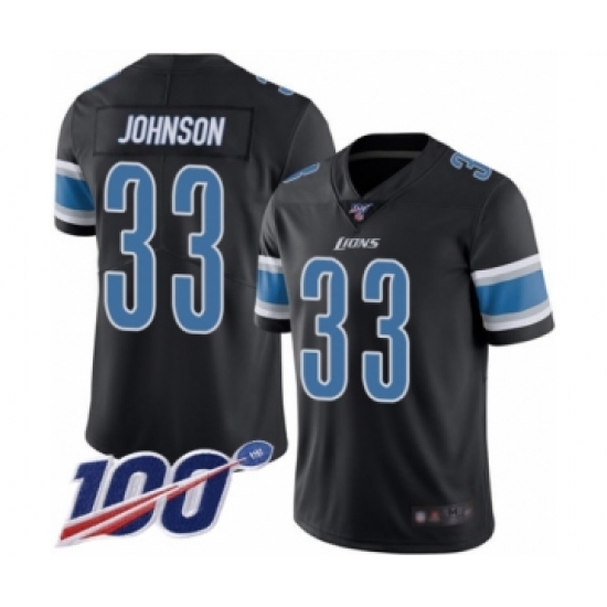 >Men's Detroit Lions #33 Kerryon Johnson Limited Black Rush Vapor Untouchable 100th Season Football Jersey