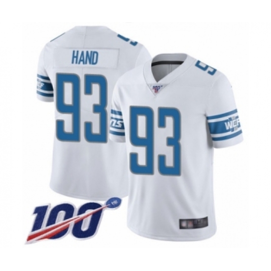 Men's Detroit Lions #93 Da'Shawn Hand White Vapor Untouchable Limited Player 100th Season Football Jersey