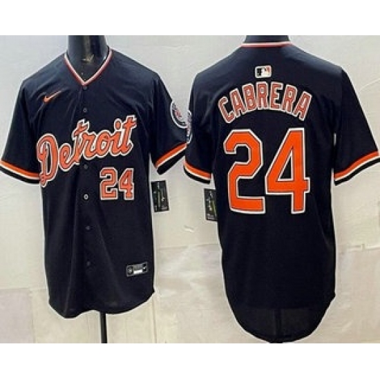 Men's Detroit Tigers #24 Miguel Cabrera Navy Cool Base Stitched Baseball Jersey