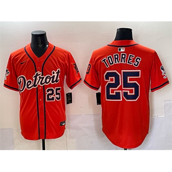 >Men's Detroit Tigers #25 Gleyber Torres Orange With Vapor Premier Limited Stitched Baseball Jersey