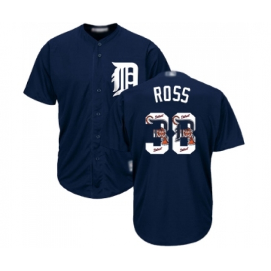 Men's Detroit Tigers #38 Tyson Ross Authentic Navy Blue Team Logo Fashion Cool Base Baseball Jersey