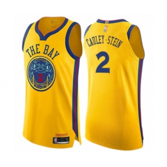 >Men's Golden State Warriors #2 Willie Cauley-Stein Authentic Gold Basketball Jersey - City Edition