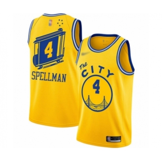 >Men's Golden State Warriors #4 Omari Spellman Authentic Gold Hardwood Classics Basketball Jersey - The City Classic Edition
