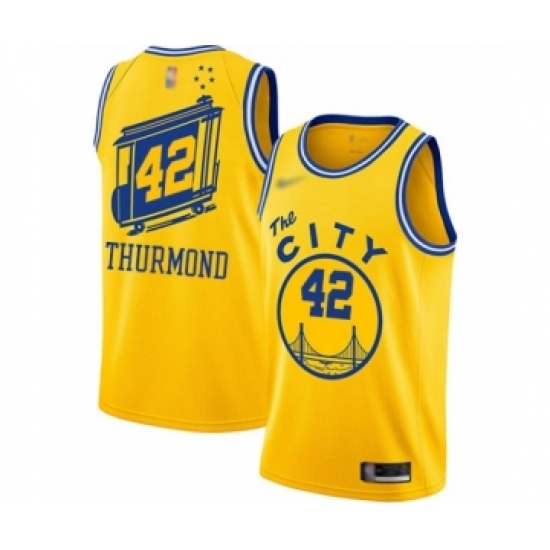 Men's Golden State Warriors #42 Nate Thurmond Authentic Gold Hardwood Classics Basketball Jersey - The City Classic Edition