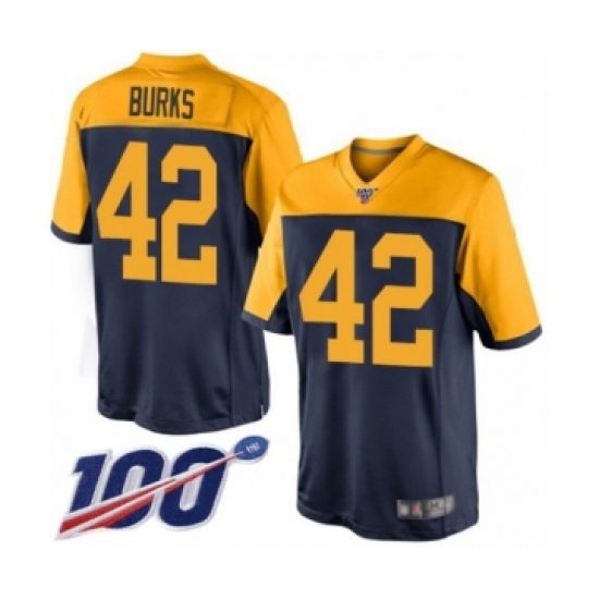 Men's Green Bay Packers #42 Oren Burks Limited Navy Blue Alternate 100th Season Football Jersey