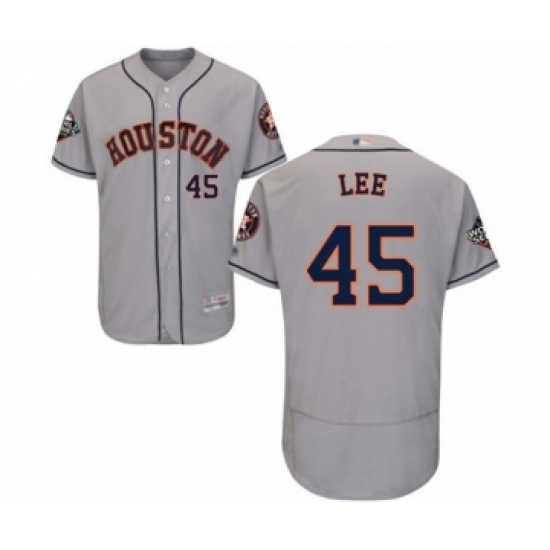 Men's Houston Astros #45 Carlos Lee Grey Road Flex Base Authentic Collection 2019 World Series Bound Baseball Jersey