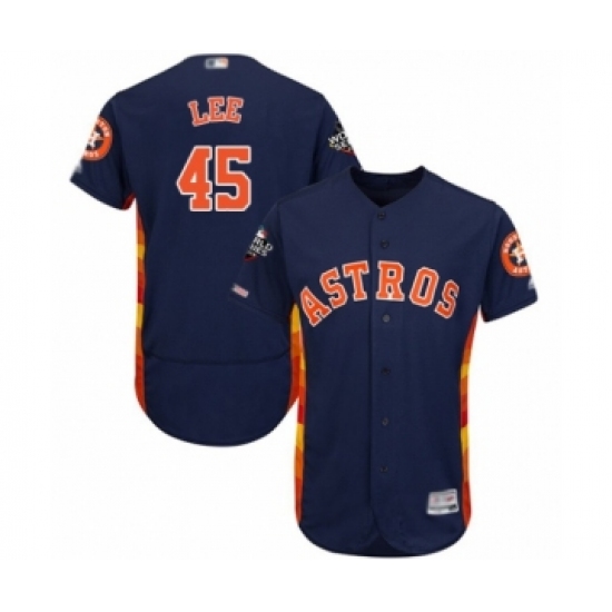 Men's Houston Astros #45 Carlos Lee Navy Blue Alternate Flex Base Authentic Collection 2019 World Series Bound Baseball Jersey