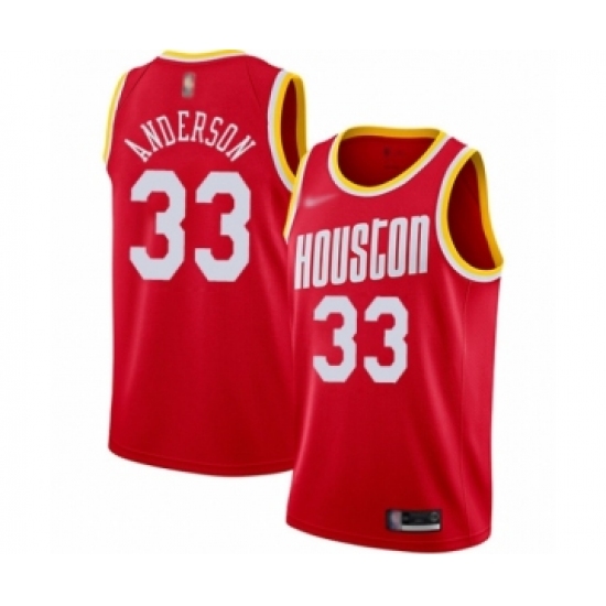>Men's Houston Rockets #33 Ryan Anderson Authentic Red Hardwood Classics Finished Basketball Jersey