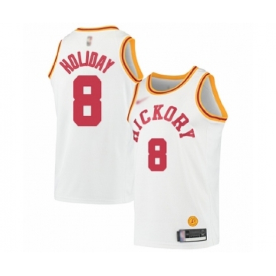 >Men's Indiana Pacers #8 Justin Holiday Authentic White Hardwood Classics Basketball Jersey