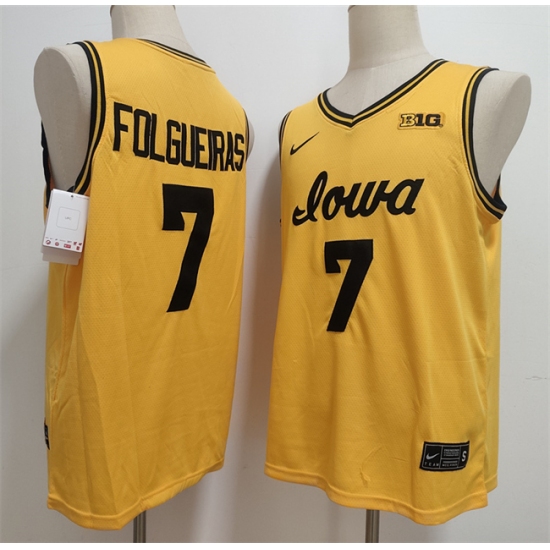 >Men's Iowa Hawkeyes #7 Alvaro Folgueiras Yellow Stitched Jersey