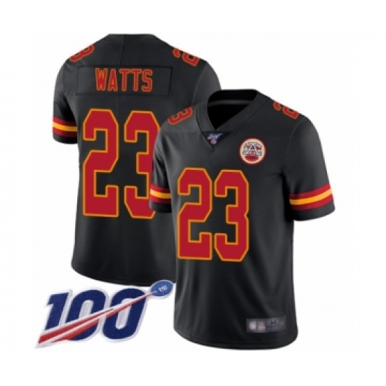 >Men's Kansas City Chiefs #23 Armani Watts Limited Black Rush Vapor Untouchable 100th Season Football Jersey