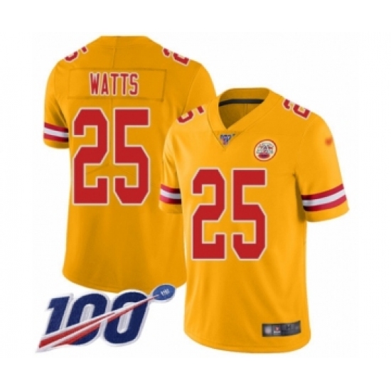 >Men's Kansas City Chiefs #25 Armani Watts Limited Gold Inverted Legend 100th Season Football Jersey