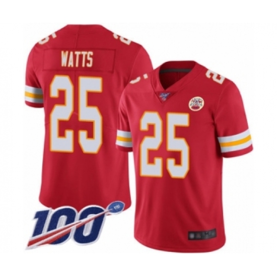Men's Kansas City Chiefs #25 Armani Watts Red Team Color Vapor Untouchable Limited Player 100th Season Football Jersey