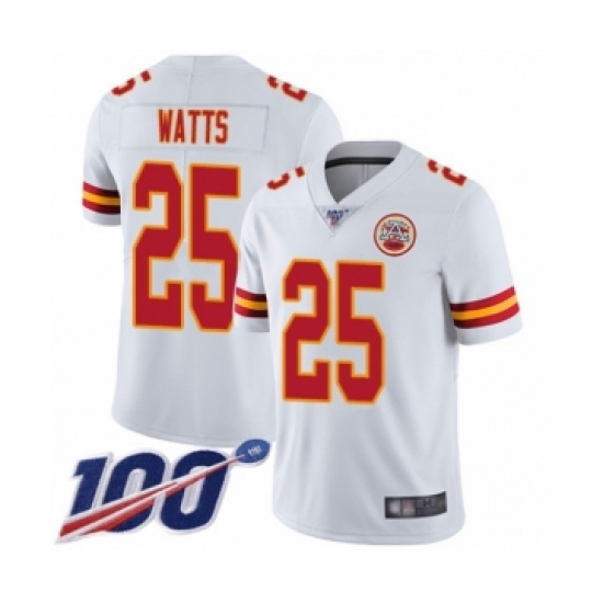 >Men's Kansas City Chiefs #25 Armani Watts White Vapor Untouchable Limited Player 100th Season Football Jersey
