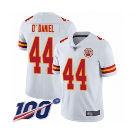 >Men's Kansas City Chiefs #44 Dorian O'Daniel White Vapor Untouchable Limited Player 100th Season Football Jersey