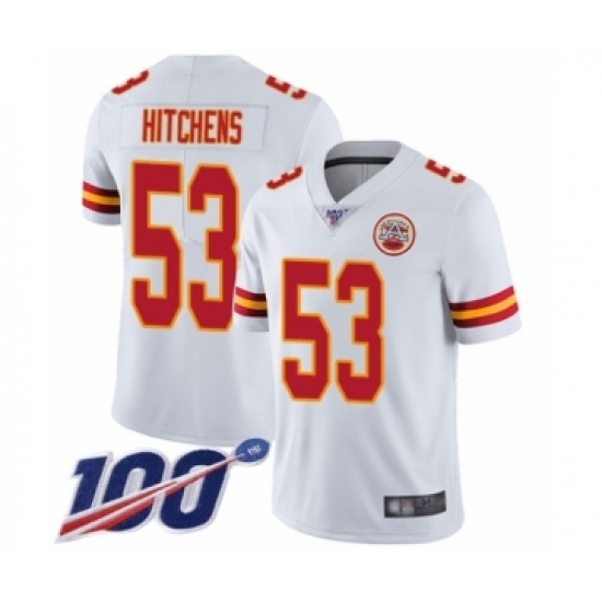Men's Kansas City Chiefs #53 Anthony Hitchens White Vapor Untouchable Limited Player 100th Season Football Jersey
