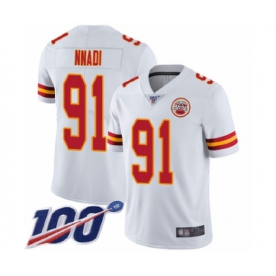 >Men's Kansas City Chiefs #91 Derrick Nnadi White Vapor Untouchable Limited Player 100th Season Football Jersey