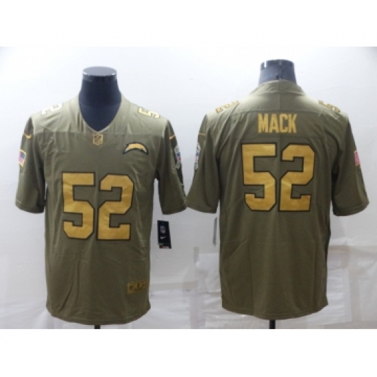 >Men's Los Angeles Chargers #52 Khalil Mack Olive Gold Salute To Service Limited Stitched Jersey