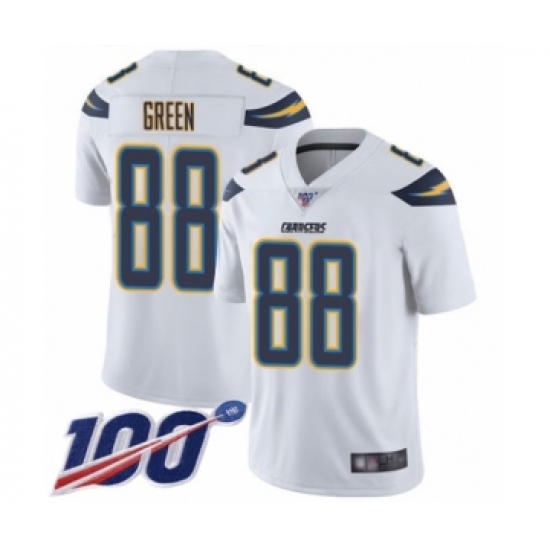 >Men's Los Angeles Chargers #88 Virgil Green White Vapor Untouchable Limited Player 100th Season Football Jersey