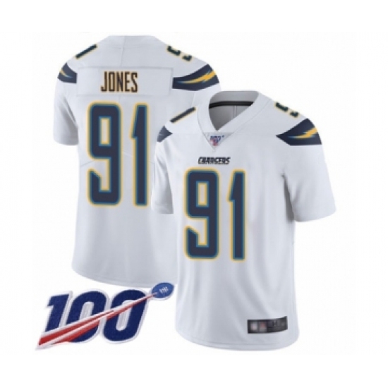 Men's Los Angeles Chargers #91 Justin Jones White Vapor Untouchable Limited Player 100th Season Football Jersey